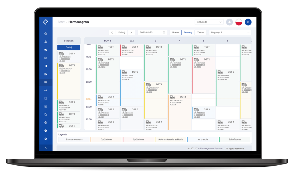 Yard Management System jest to system informatyczny w logistyce, który pomaga zarządzać pracą zarówno pojedynczego magazynu, jak i wielu, w różnych lokalizacjach. Przejrzysty harmonogram eliminuje prawdopodobieństwo pomyłek przy planowaniu łańcucha logistycznego poprzez zarządzanie bramami i przypisanymi im awizacjami. Raporty pracy magazynu oraz statystyki to jedne z wielu zalet systemu.